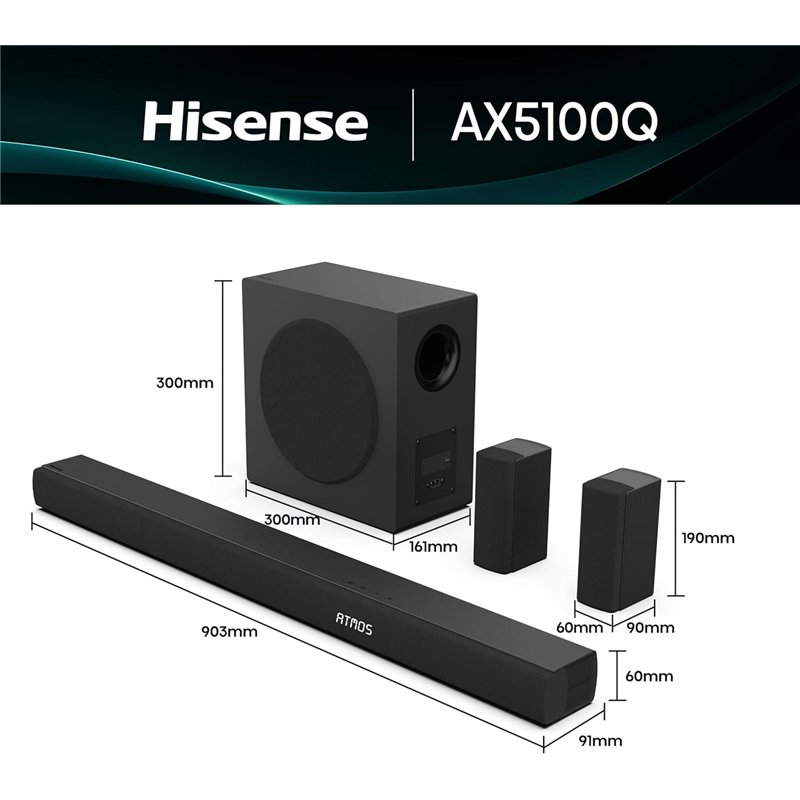 Perfecta para expertos y entusiastas del audio que buscan la mejor calidad, espacio y potencia en un único sistema de barra de sonido. Si quieres elevar tus sesiones audiovisuales, la AX5100Q está diseñada para ti. Consulta más abajo para descubrir en detalle cómo puede ajustarse a tus necesidades.
