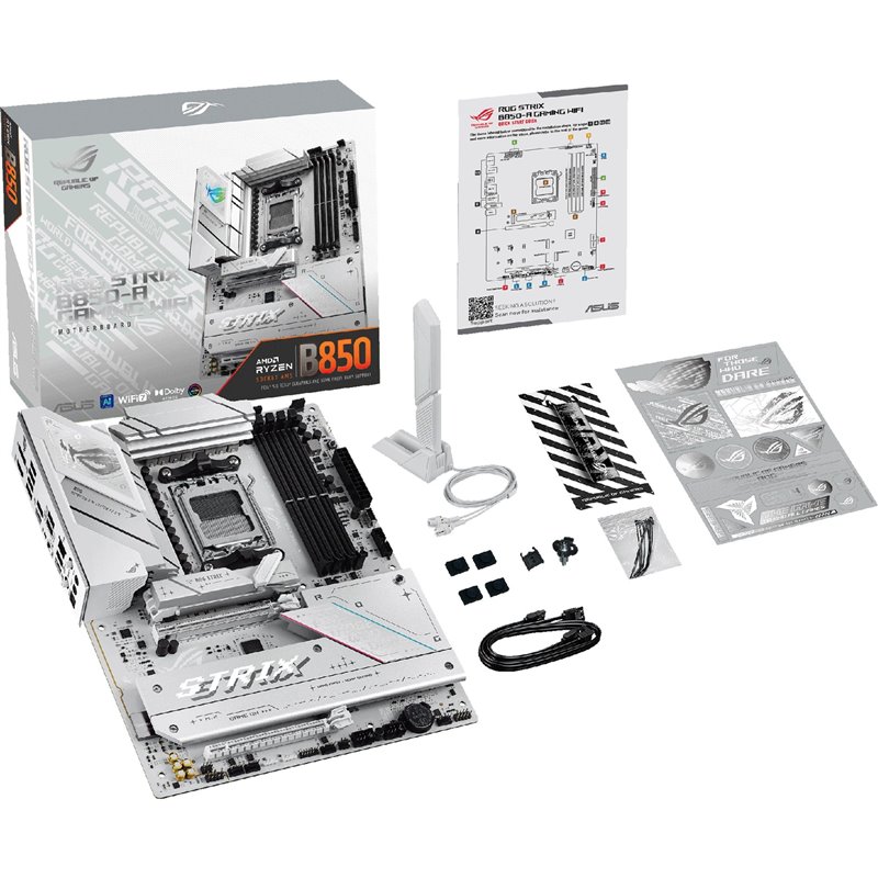 Mejora tu equipo con la ROG Strix B850-A Gaming WiFi. Con una elegante placa base blanca y compatibilidad con procesadores AMD Ryzen™ Serie 9000, esta placa base ofrece la potencia y la conectividad necesarias para aplicaciones de IA avanzadas. Con compatibilidad con DDR5, capacidades PCIe 5.0 completas, puerto USB de 20 Gbps y WiFi 7, es la combinación perfecta de estilo y rendimiento.