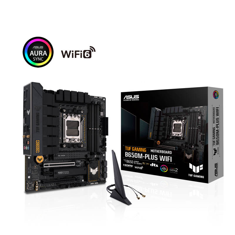 ASUS TUF GAMING B650M-PLUS WIFI toma todos los elementos esenciales de los últimos procesadores de la serie AMD Ryzen 7000 y los combina con funciones listas para jugar y durabilidad comprobada. Diseñada con componentes de grado militar, una solución de alimentación mejorada y un sistema de refrigeración integral, esta placa base supera las expectativas con un rendimiento sólido y estable para juegos de maratón.