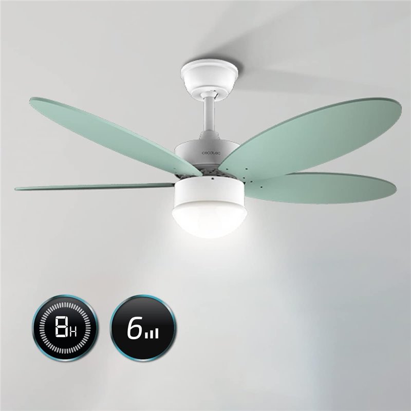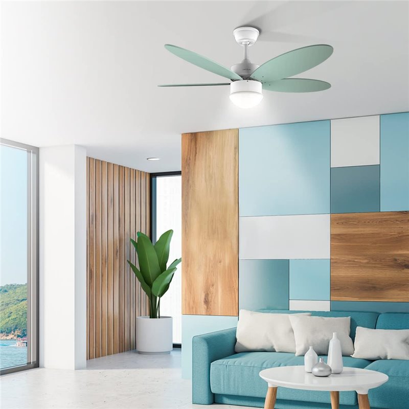 EnergySilence Aero 4260 Mint Ventilador de techo de 40 W con motor DC y 42” con luz LED, mando a distancia , temporizador, 6 velocidades y 5 aspas reversibles.