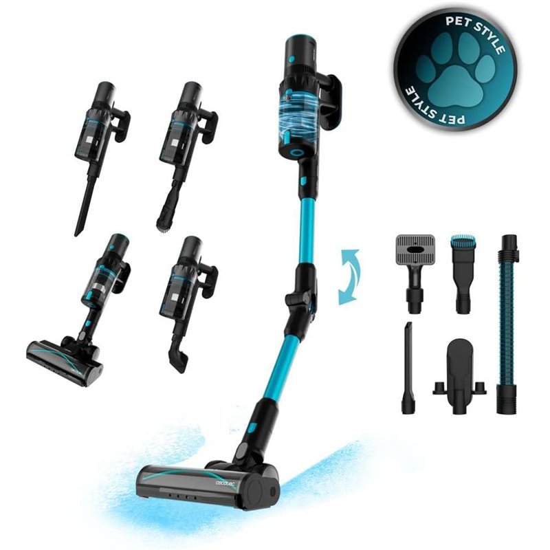 Conga Rockstar 3500 Storm Pet Flex. Aspirador escoba sin cables sin bolsa BLDC con 500 W de potencia total y 150 AW. 70 minutos de autonomía en modo ECO. Cepillo HairLess antienredos. Tubo flexible y cepillo para animales.