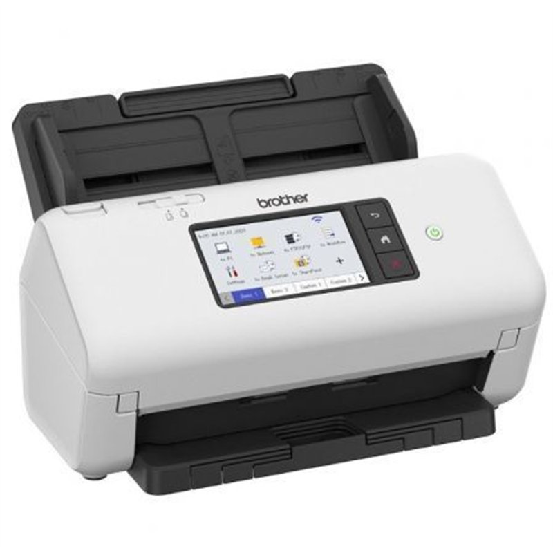 Escáner profesional muy rápido, con conexión por USB, red cableada o WiFi. Puede escanear a velocidad de hasta 80 páginas por minuto a doble cara y dispone de una capacidad de alimentación (ADF) de 80 hojas. Permite escanear directamente a carpetas de red sin necesidad de estar conectado a un PC. La pantalla táctil contribuye a la productividad, permitiendo crear accesos directos a cualquier carpeta de red. Funciones estándar: Escaneado a PC, Imagen, Red (SMB), Servidor de Email, Flujo de trabajo, FTP/SFTP, SharePoint (On Premise), Brother Web Connect, Escaneado a HTTP(S), Brother Apps