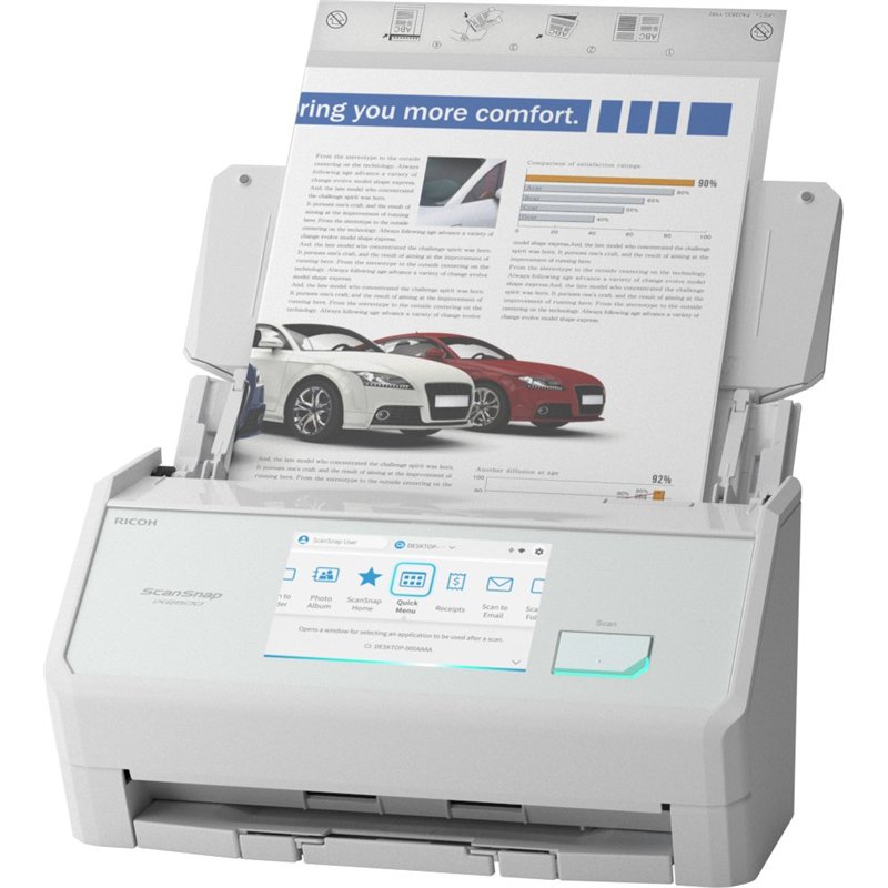 El iX2500 cuenta con una pantalla táctil capacitiva de 5 pulgadas y los elementos de diseño más populares de ScanSnap, incluida la función de escaneo con un solo toque para un proceso sencillo.