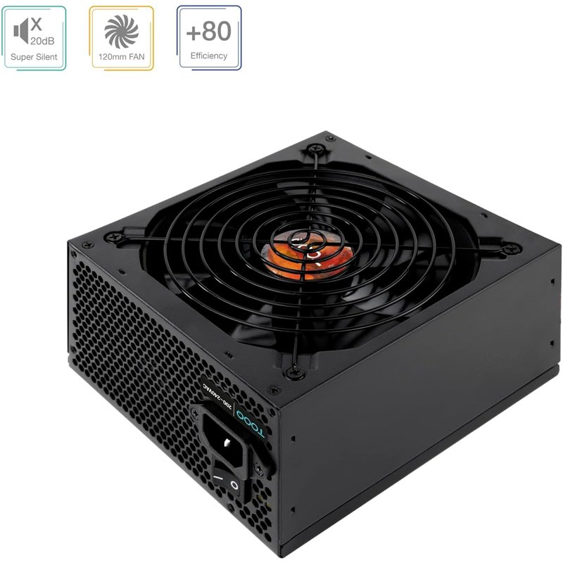 Conectividad versátil y estructura robusta. Incorpora un completo set de cables: 24-pin ATX, CPU 4+4 pines, 6+2 PCIe, 5 SATA y 3 Molex. Su estructura compacta (150 x 140 x 85 mm) se adapta fácilmente a diversos chasis ATX, asegurando una integración perfecta y ordenada.