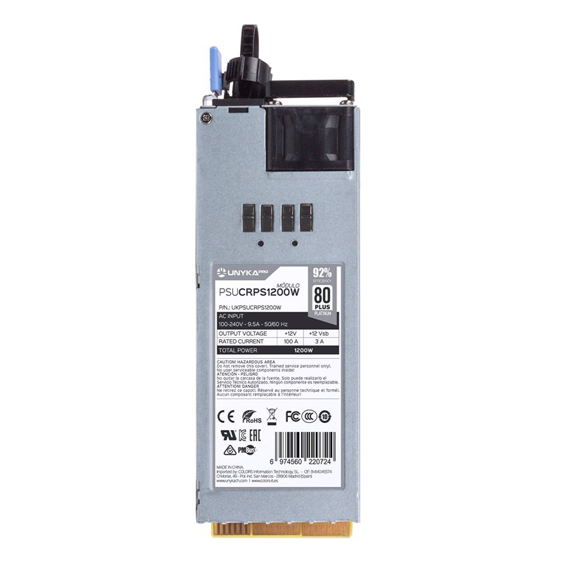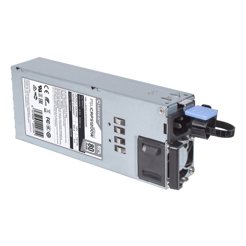 La unidad de fuente de alimentación CRPS 1200W se puede conectar en caliente/redundante y posee la certificación 80 Plus Platinum, el equivalente a una eficiencia del 92%.
