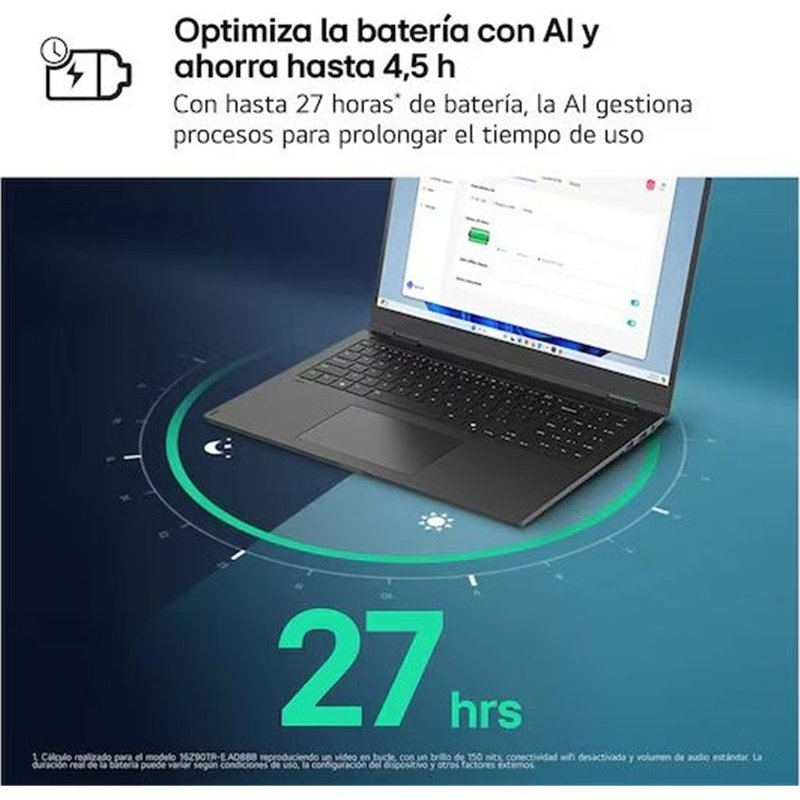 Con el procesador Intel Core Ultra 7, LG gram potencia la AI con 3 AIs integradas: Chat On-Device sin conexión a internet, Chat Cloud basado en GPT-4o y Copilot, optimizando rendimiento y eficiencia en un diseño portátil y ultraligero.