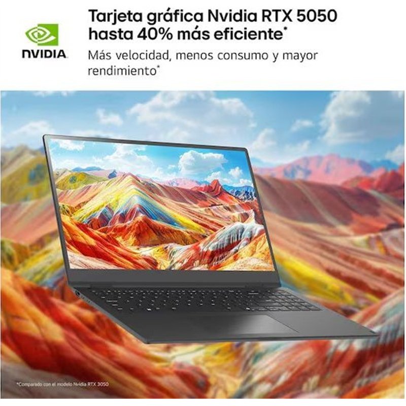La tarjeta NVIDIA RTX5050 ofrece gráficos de máxima calidad en 4K UHD, Además con 32GB de RAM LPDDR5x y un SSD de 1TB NVMe 4ª Gen ampliable, consigue un alto rendimiento para proyectos más exigentes.