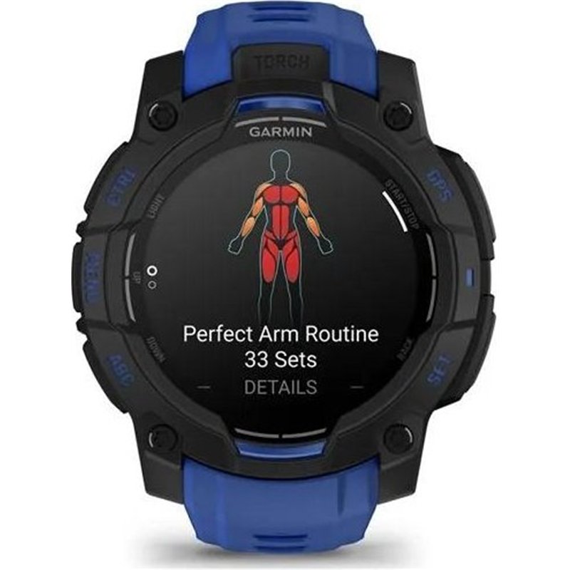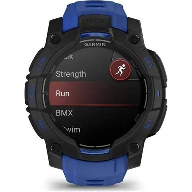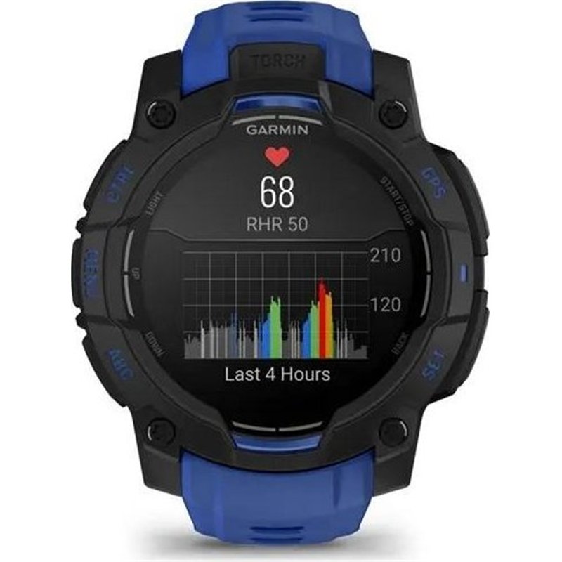 Nuevo reloj Garmin Instinct 3 con diseño en azul y negro, pensado para deportistas que quieren mejorar en su actividad deportiva, resistente smartwatch con GPS diseñado para soportar todo tipo de adversidades. El nuevo diseño atornillado y el bisel metalizado con cristal resistente a arañazos te permitirá enfrentarte a las aventuras más emocionantes. Este reloj te ayudará a entrenar a tu manera y con él podrás recibir notificaciones inteligentes. Todo acompañado de unos materiales de calidad y una sumergibilidad de 100m (10ATM). Las funciones de salud y bienestar 24/7 te mantienen conectado a tu cuerpo con un seguimiento de la frecuencia cardiaca, monitorización avanzada del sueño, Pulse Ox2 y mucho más. Toda la serie Instinct 3 incluye pagos contactless GarminPay3 y una potente linterna LED.