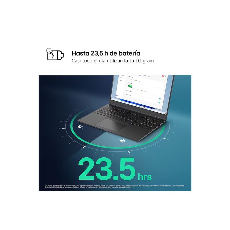 Con solo 1.199 Kg de peso, hasta 23.5 horas de batería2 y un grosor de 16.8 mm, el LG gram te acompaña a donde quieras, combinando ligereza y autonomía para una libertad sin límites.
