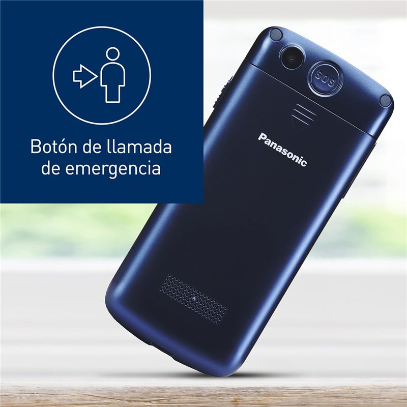 Botón SOS: llamada prioritaria con manos libres. En caso de emergencia, el KX-TU110 ofrece hablar con manos libres con los contactos prioritarios previamente definidos (hasta cinco). Simplemente pulsando el botón SOS de la parte trasera, el teléfono llamará automáticamente al contacto de emergencia. Si esa persona no está disponible, el teléfono llamará al siguiente contacto.