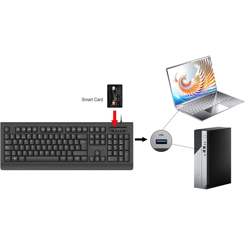 Funcionalidad extendida, sin complicaciones. Equipado con teclas multimedia y teclas dedicadas de Windows, agiliza múltiples tareas y accesos directos, aumentando la productividad sin curva de aprendizaje. El lector de tarjeta inteligente integrado ofrece compatibilidad con aplicaciones de seguridad y autentificación, muy valorado en los sectores IT y administrativos.