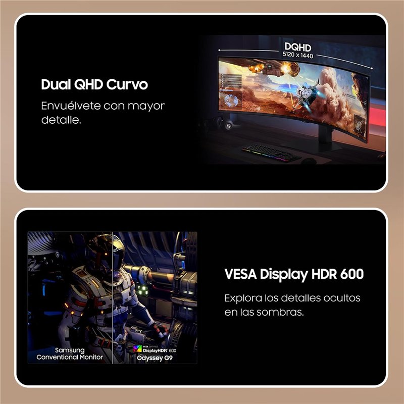 QHD doble curvada: Sumérgete en una experiencia de juego panorámica con una pantalla curva 1000R. Esta pantalla ultrapanorámica 32:9, equivalente a dos monitores 16:9 uno al lado del otro, ofrece una visión completa de tus enemigos para que puedas ir un paso por delante.