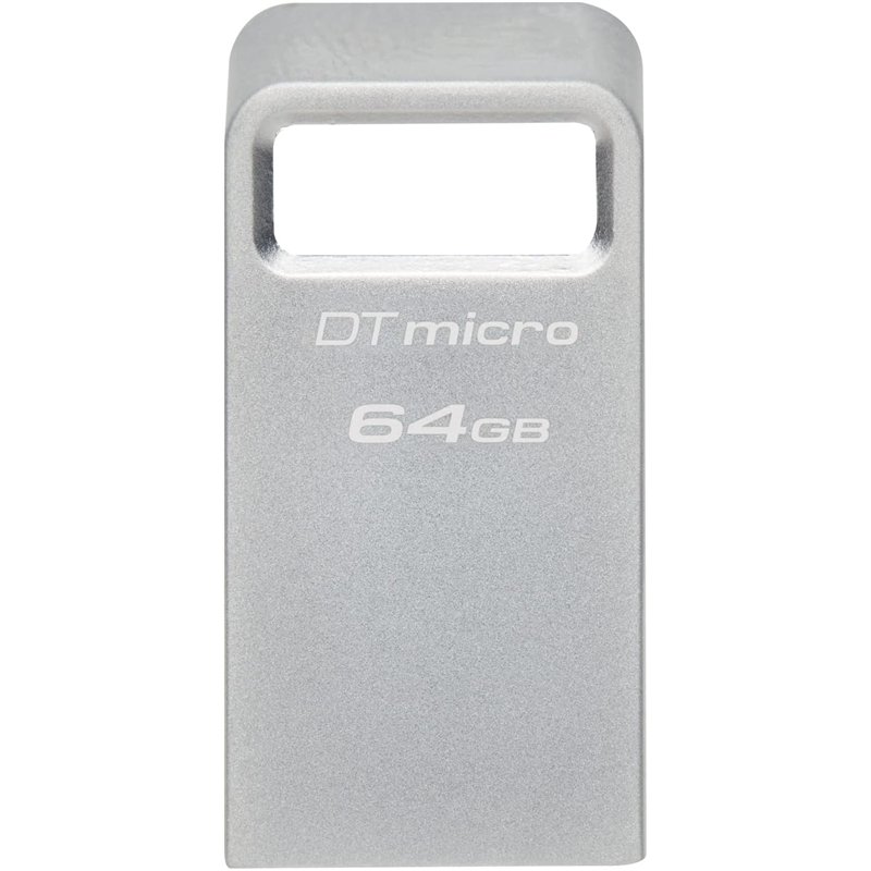 DataTraveler Micro es una unidad USB ultracompacta y ligera, ideal como espacio de almacenamiento plug-and-stay, compatible con ordenadores, impresoras, consolas de juegos y mucho más. La unidad tiene una carcasa metálica de alta calidad y bajo perfil y una ranura de acoplamiento integrada para evitar interferencias cuando se conecta a los puertos USB. DT Micro ofrece una velocidad máxima de USB 3.2 Gen de 200 MB/s de lectura y una capacidad máxima de 256 GB para transferir y almacenar rápidamente archivos de gran tamaño como películas, música, juegos y fotos.