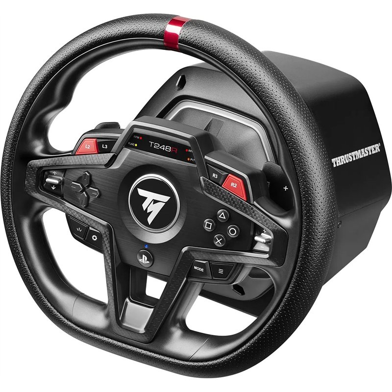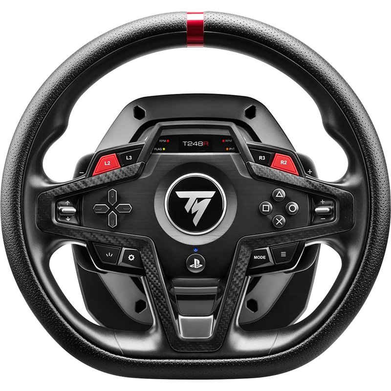 Force Feedback híbrido T-HD de 3,1 N·m. El T248R integra un sistema de Force Feedback híbrido (correa y engranaje) que entrega una fuerza de 3,1 N·m y 48 W de potencia constante, ofreciendo sensaciones realistas y reactividad instantánea en cada maniobra, permitiendo sentir cada irregularidad del asfalto, los cambios de adherencia y el peso real del coche en cada giro.