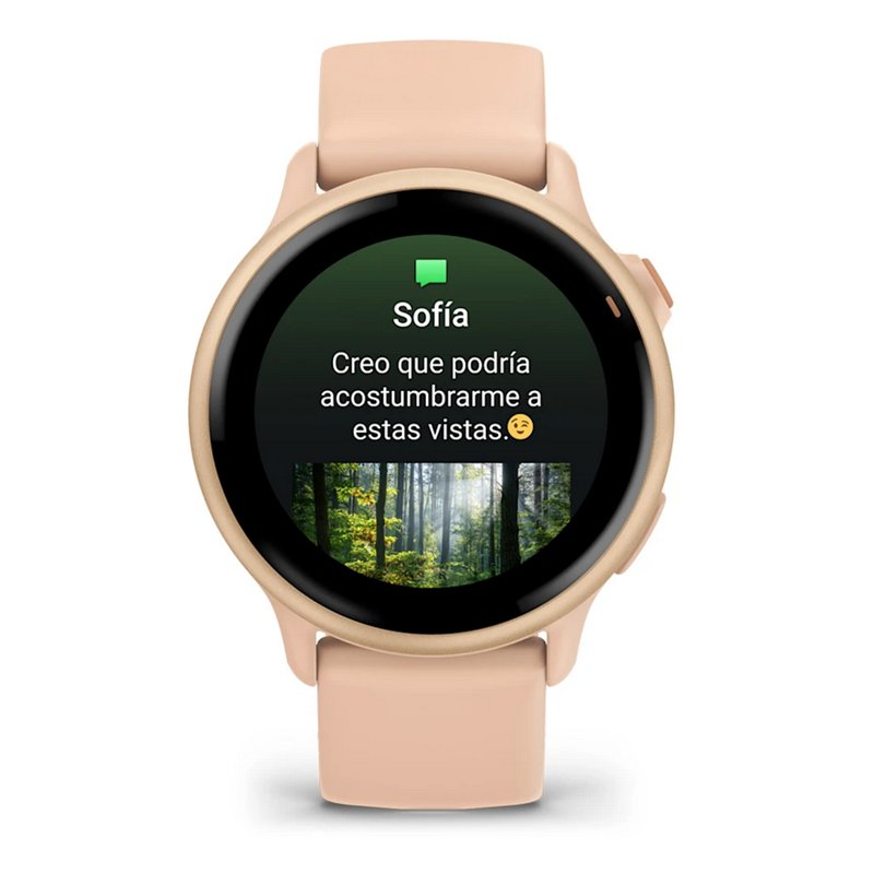 Recibe correos electrónicos, mensajes de texto y alertas en el reloj cuando esté vinculado a un smartphone Android o iPhone. Con un teléfono Android, podrás responder a los mensajes de texto con el teclado del reloj y ver las fotos recibidas directamente en la pantalla del reloj.