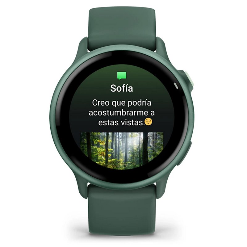 Recibe correos electrónicos, mensajes de texto y alertas en el reloj cuando esté vinculado a un smartphone Android o iPhone. Con un teléfono Android, podrás responder a los mensajes de texto con el teclado del reloj y ver las fotos recibidas directamente en la pantalla del reloj.