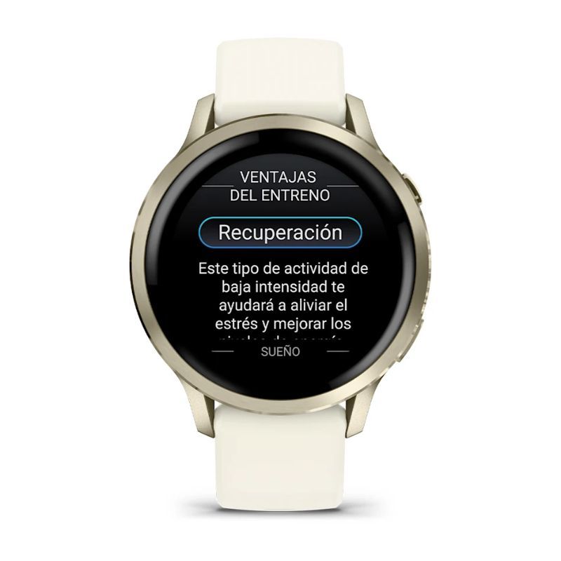 Mejora hacia un estilo de vida más saludable con amplias funciones de control de la salud, como monitor de energía Body Battery™, estrés, pulsioximetría y seguimiento de la salud femenina, incluidas las estimaciones de las ovulaciones anteriores, y mucho más.