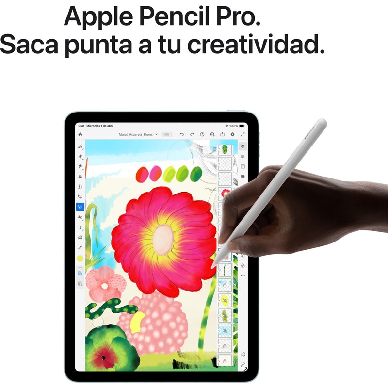 El Apple Pencil se ha convertido en un referente a la hora de dibujar, pintar, escribir y tomar notas. Cada gesto es intuitivo, preciso y casi mágico. Su trazo es inmediato, su precisión es milimétrica, detecta la inclinación y no pasa nada si apoyas la mano en la pantalla. Y con el Apple Pencil Pro tienes aún más funciones para hacer despuntar tu talento.