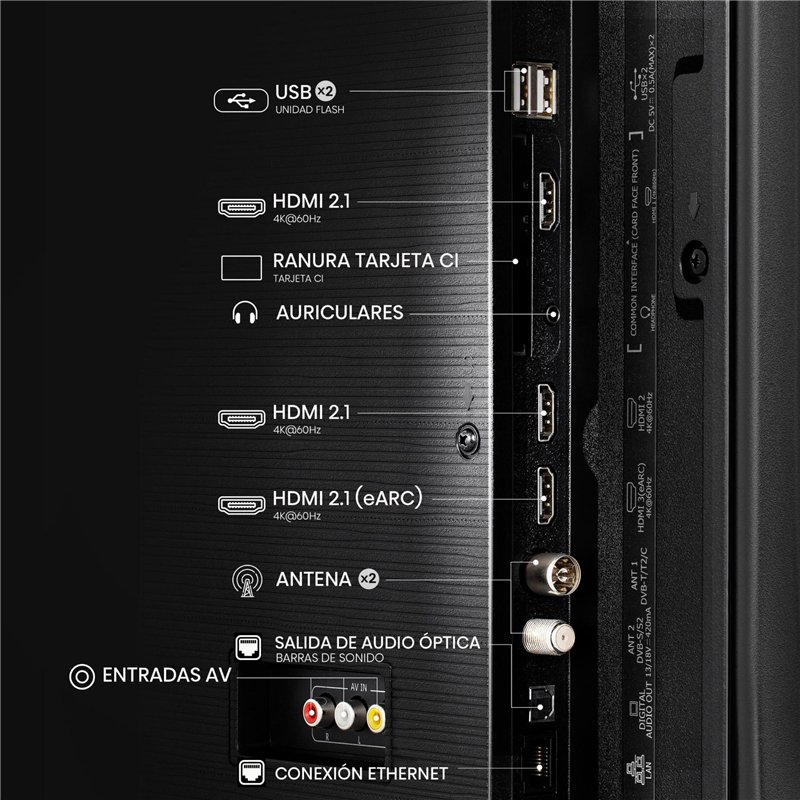 | Puerto HDMI | 1 x HDMI2.1 (ALLM, VRR 4K 60 Hz) 1 x HDMI2.1 (ALLM, VRR 4K 60 Hz) 1 x HDMI2.1 (eARC, ALLM, VRR 4K 60 Hz) |