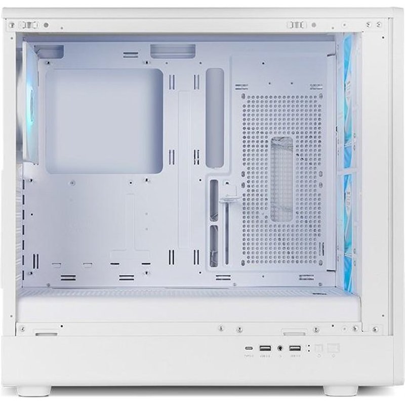El frontal de mesh metálico garantiza un caudal de aire excepcional, mientras que los cuatro ventiladores ARGB PWM de 140 mm incluidos (tres frontales y uno trasero) proporcionan una ventilación sobresaliente con control dinámico, apoyados por la capacidad de instalación de hasta doce ventiladores de 120 mm o combinaciones con ventiladores de 140 mm en ubicaciones clave. El lateral transparente permite lucir configuraciones avanzadas de hardware y gestión de iluminación ARGB personalizable.