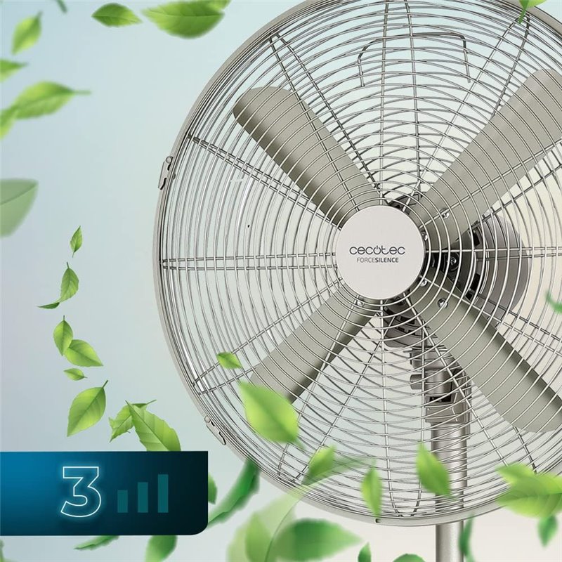EnergySilence 610 Steelstyle Ventilador de pie con 50 W y acabado en acero, 16 pulgadas, 3 velocidades, oscilación, silencioso, altura ajustable, 4 aspas y máxima seguridad.