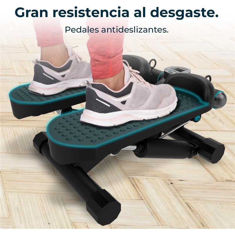 Stepper Drumfit StepTrain 1000 Band Stepper con bandas elásticas de resistencia. Pantalla LCD. Pedales antideslizantes. Resistencia manual. Máximo peso del usuario 100 Kg.